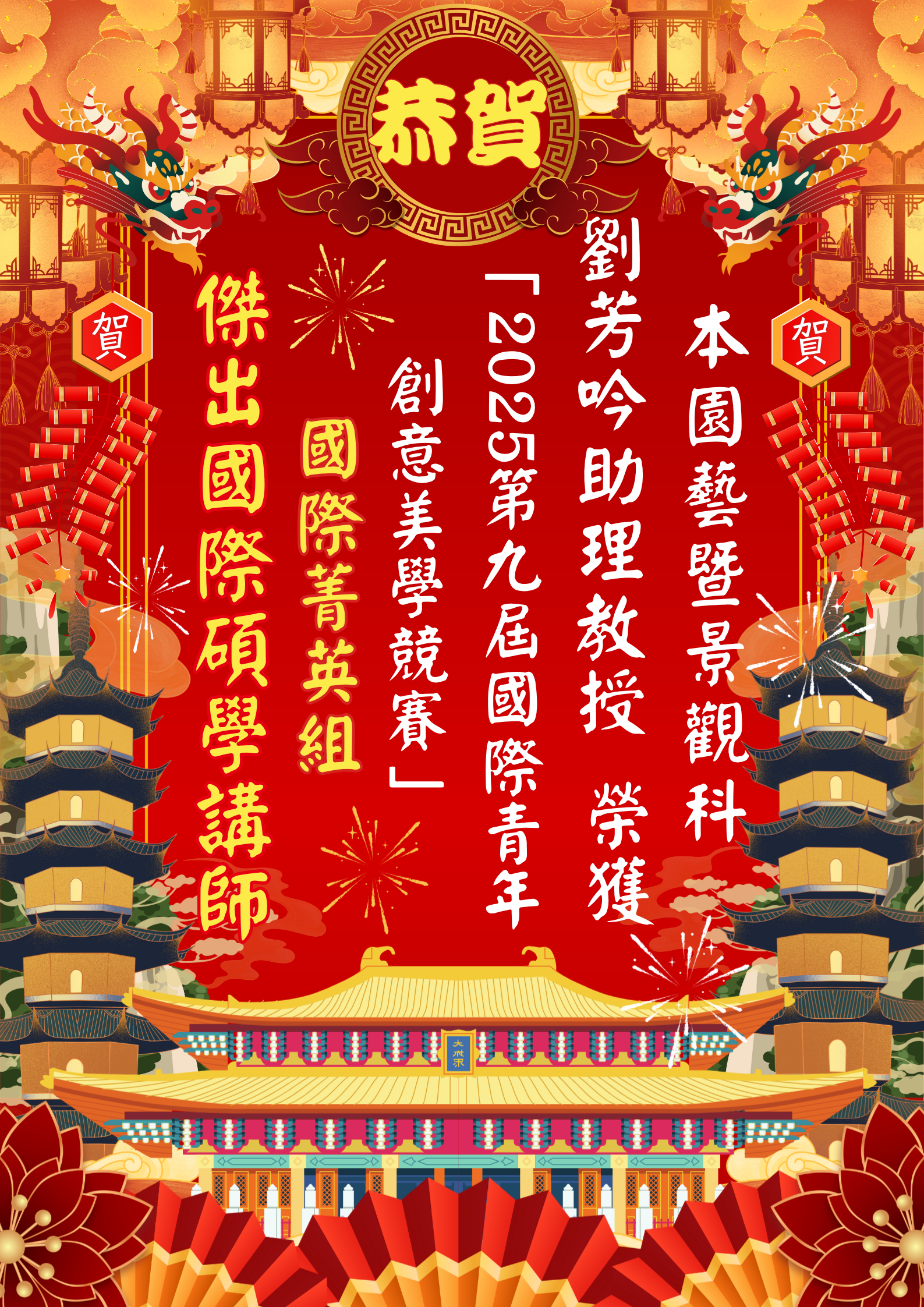 此次榮獲國際雙獎,是劉芳吟老師多年耕耘的至高肯定,不僅為園藝科增添了無比榮光,更是臺東之光、學校之傲!全體師生一同獻上最熱烈的恭賀與最高的敬意!